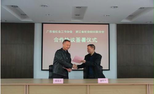 1月17日,广东省社会工作协会与浙江省社会组织联合会举行刊物合作协议签署仪式。广东省社会组织总会常务副会长、《大社会》杂志社社长唐国平等人专程来杭,省社会组织联合会会长、省民政厅副厅长梁星心,省社会组织联合会常务副会长、省社会组织管理局局长蔡国华等人出席仪式。