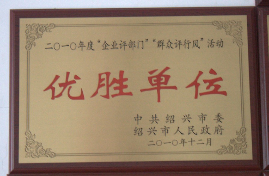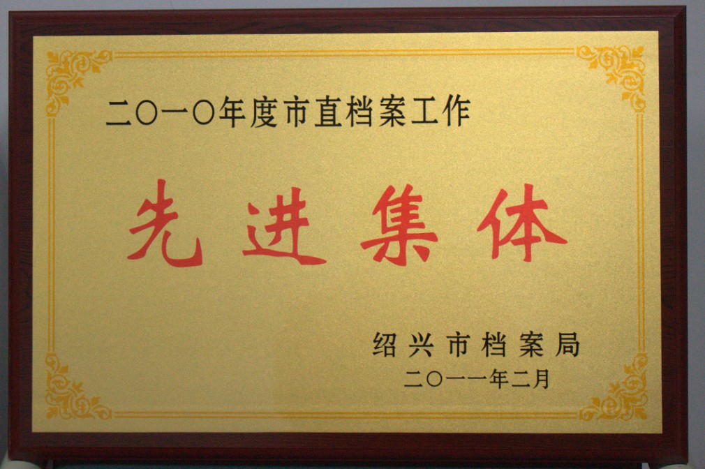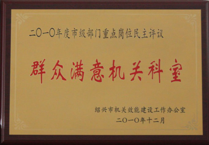 2010年度绍兴市级机关(部门)工作目标责任制考核一等奖