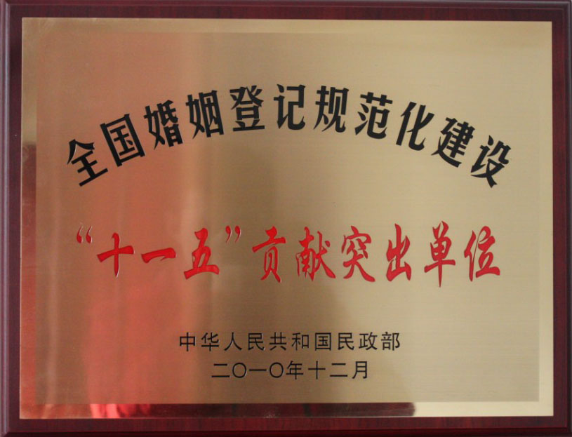 全国婚姻登记规范化建设“十一五”贡献突出单位