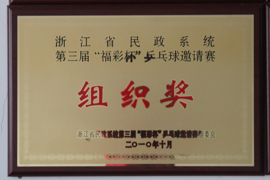 浙江省民政系统、第三届“福彩杯”乒乓球邀请赛组织奖