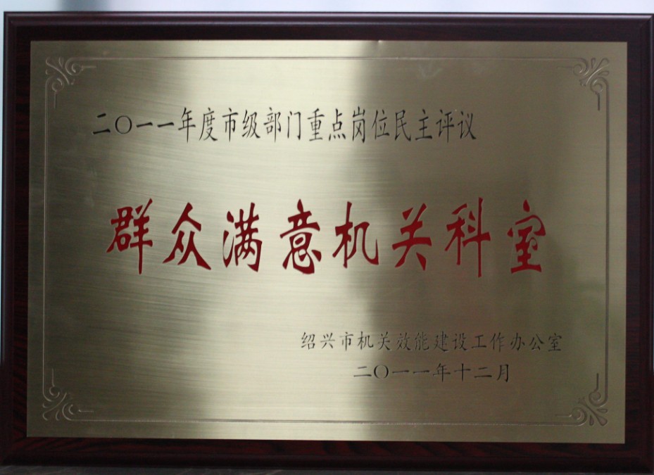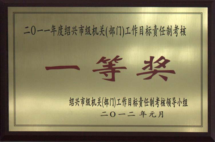 2011年度绍兴市级机关(部门)工作目标责任制考核一等奖