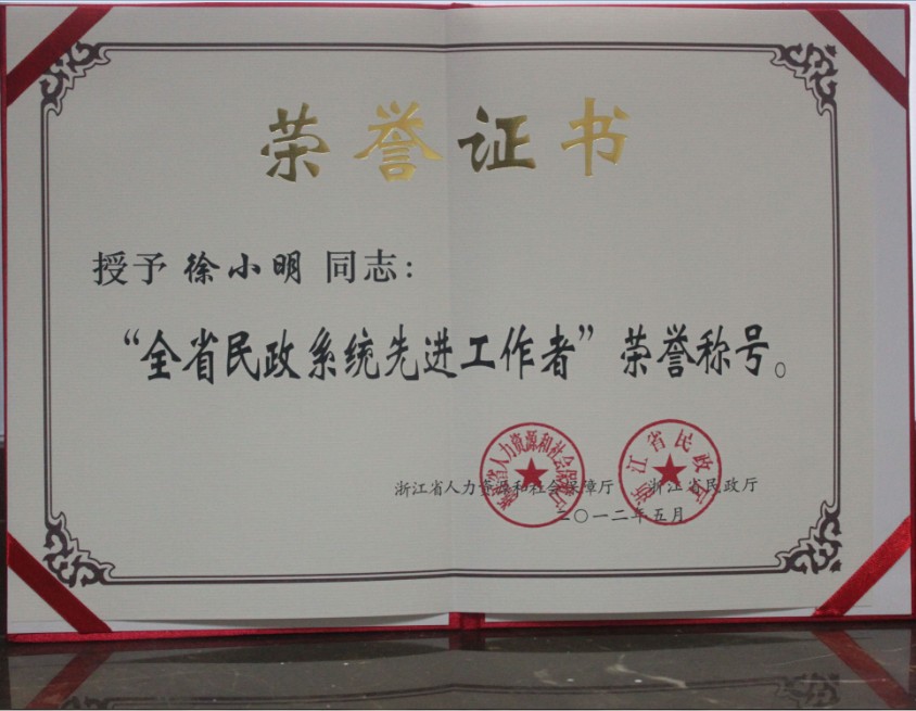 2012徐小明获全省民政系统先进工作者201205