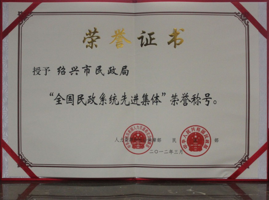 2012全国民政先进集体奖状201203